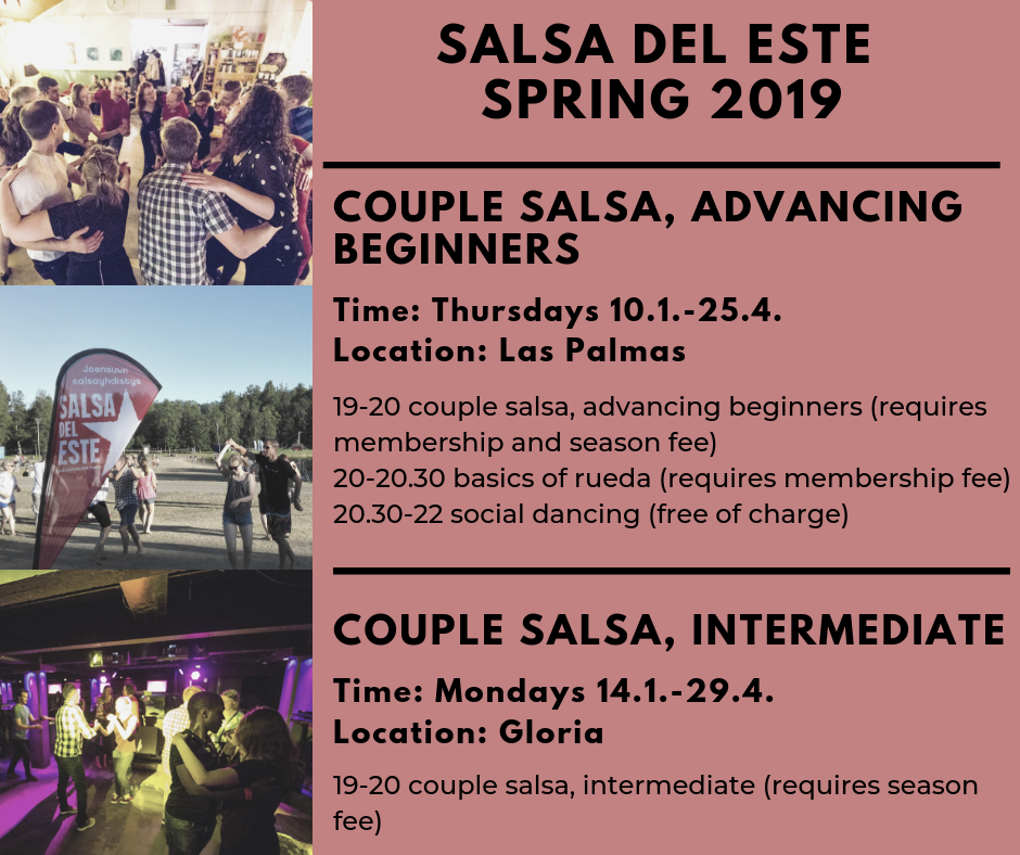Aika startata kevätkausi 2019! Merkitse siis kalenteriisi tai tallenna nettisivujen Google-kalenteri omaan kalenteriisi. Liity myös nettisivujen postituslistalle, jotta pysyt ajan tasalla uutiskirjeiden muodossa. Aikataulu löytyy paitsi tästä postauksesta, myös täältä. Hinnat puolestaan löytyvät täältä.