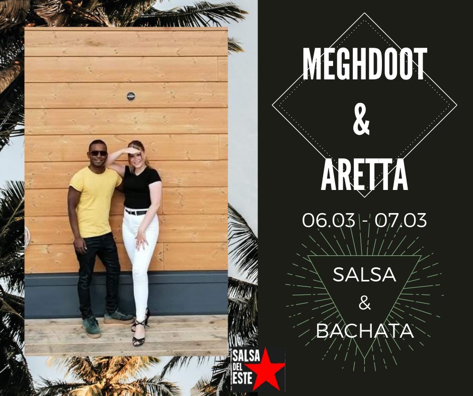 Meghdoot ja Aretta ovat kuopiolainen tanssipari, jotka ovat opettaneet yhdessĂ€ nyt pÀÀlle 2 vuotta. PienyrityksensĂ€ Tanssi Kuopio kanssa he jĂ€rjestĂ€vĂ€t salsan, bachatan ja kizomban viikkotunteja, sekĂ€ erilaisia maksuttomia tanssitapahtumia lĂ€hes kuukausittain! YhteensĂ€ tanssivuosia parilla on jo yli 10. Meghdoot ja Aretta matkustavat jatkuvasti oppimaan lisÀÀ tanssien ammattilaisilta erilaisilla kursseilla ja workshopeille. Esimerkiksi Aretta on erikoistunut sembaan ja kizombaan, ja treenaakin niitĂ€ sÀÀnnöllisesti Angolassa lajin parhaimmiston kanssa. Aretta on myös opettanut lajeja kansainvĂ€lisesti angolalaisen tanssimestari âSilvio do Sembaân kanssa.