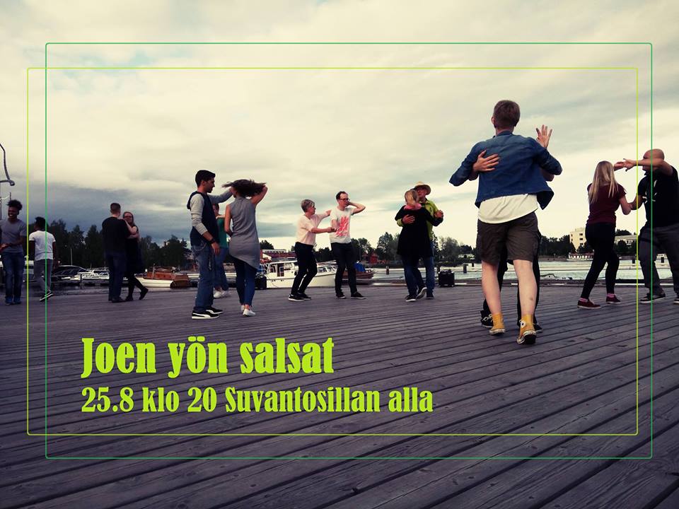 Salsa del Este on mukana Joen yössä! Tervetuloa tanssimaan salsaa ja muita lattareita Suvantosillan alle klo 20-22. 🙂 Welcome to dance salsa and other Latin dances under the big bridge Suvantosilta (Suvantosilta 30) on Friday 25th of August from 8 p.m. until 10 p.m. 🙂